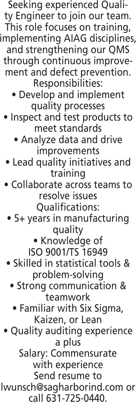 Oct 01, 2025. Sag Harbor Industries, Inc. Engineering Jobs from The Daily Reflector