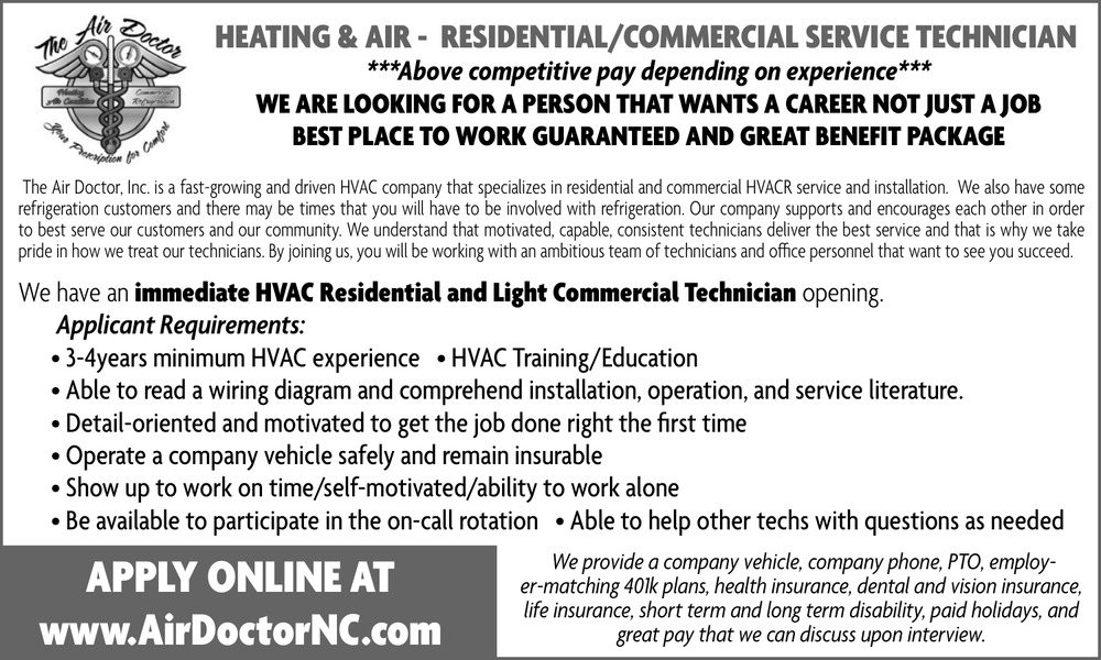 Jan 24, 2026. The Air Doctor, Inc Technicians Jobs from The Daily Reflector