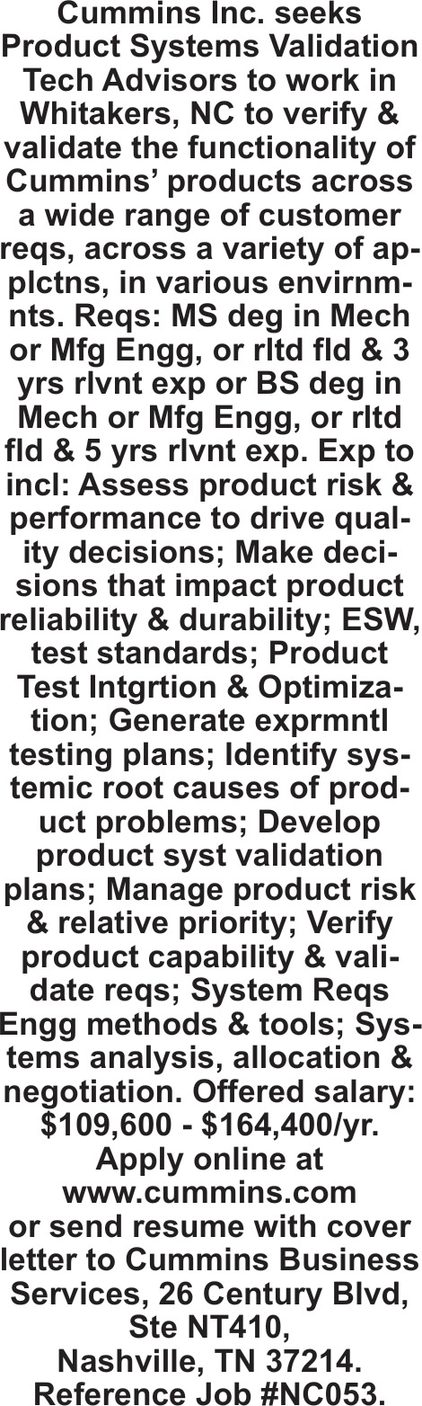 Jan 30, 2026. Cummins Inc. Inspector Jobs from Rocky Mount Telegram