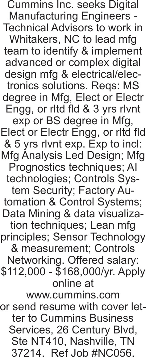 Mar 27, 2026. Cummins Inc. Engineering Jobs from Rocky Mount Telegram