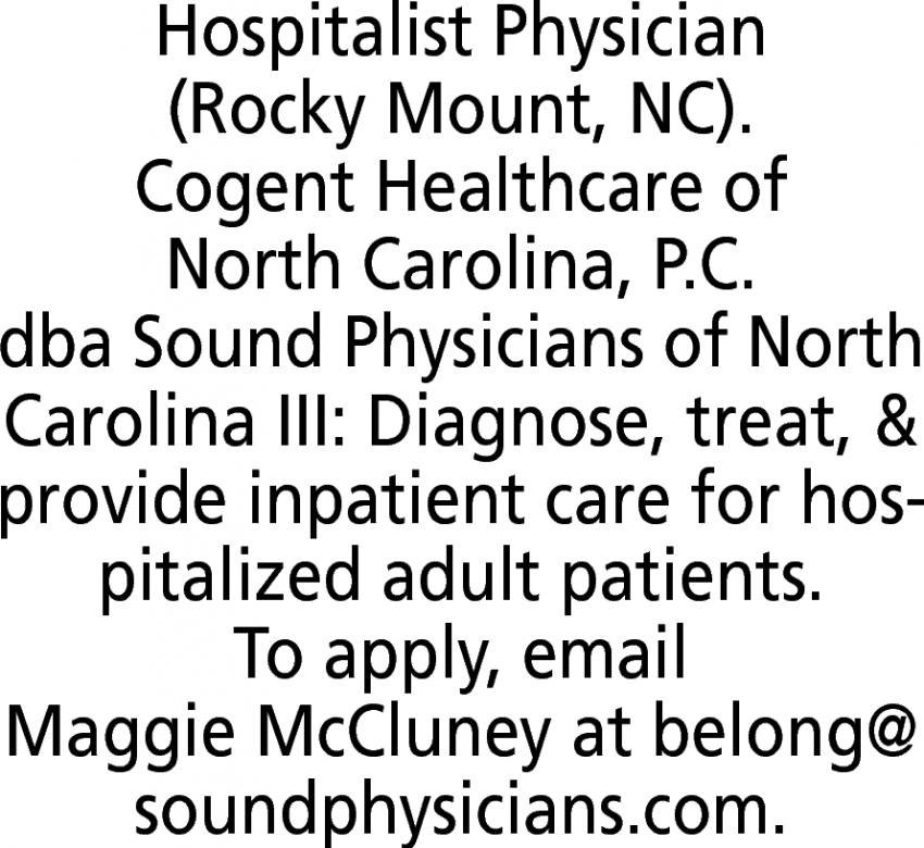 Dec 18, 2021. Cogent Healthcare Of North Carolina Healthcare/ Dental Jobs from Rocky Mount Telegram