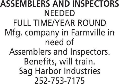 Oct 31, 2023. Sag Harbor Industries, Inc. Assemblers Jobs from The Daily Reflector